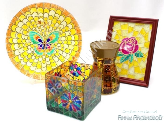 На нашем мастер-классе используются специальные акриловые краски, которые быстро застывают даже на стеклянных изделиях и не смываются.