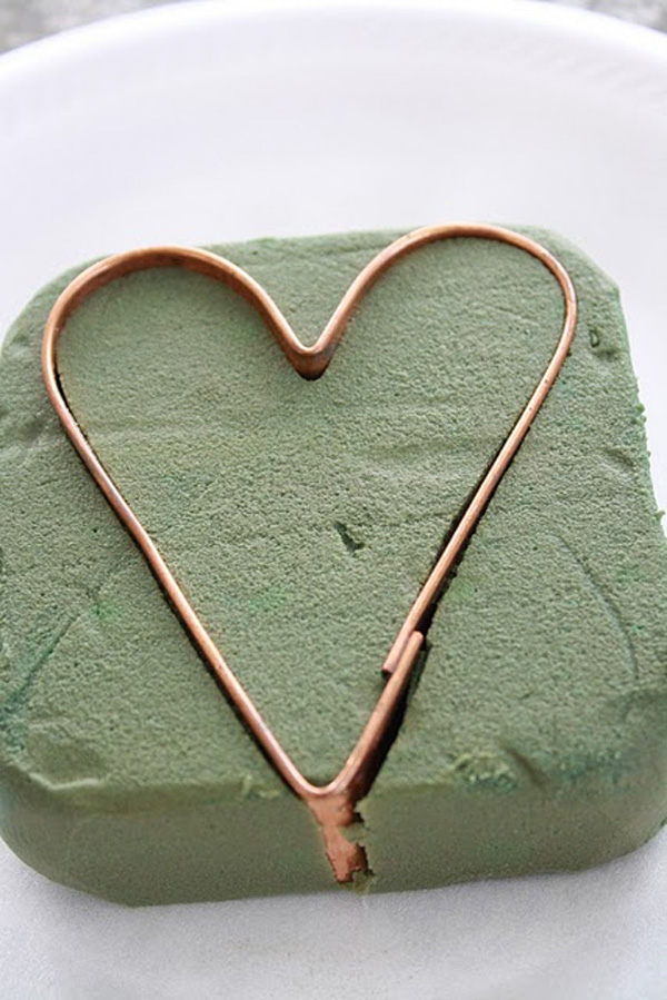 После этого вырежем из оазиса сердце. Материал довольно мягкий — подрезать его можно большим канцелярским резаком или специальной формой, которая продается в магазинах с товарами для хобби.
