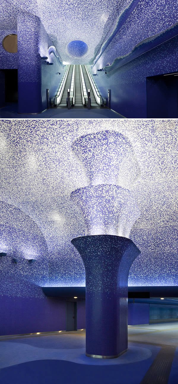 Этот ослепительный световой купол является частично станцией метро, частично калейдоскопом и считается самой широкомасштабной работой из стекла в мире. Купол, состоящий из 4500 панелей был создан Нарциссом Куаглиата (Narcissus Quagliata), итальянским дизайнером, который назвал его «Ветер, Огонь и Время». Учитывая духовный облик этого произведения искусства, совсем не удивительно, что его предлагают в качестве места для проведения массовых свадеб.