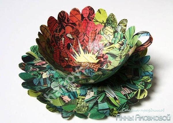 Бумажные чашки, блюдца и другие предметы из старых книг